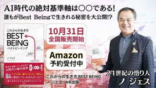 本日、ノジェス新刊本「これからの生き方 BEST BEING」が発売になりました。今、基準点が破壊され、これまでの人間が生きる基準軸を失っている中、著書はこれからの基準軸はこれだと明確に言い切り、人類の方向性を示しています。著者ノジェスが本...