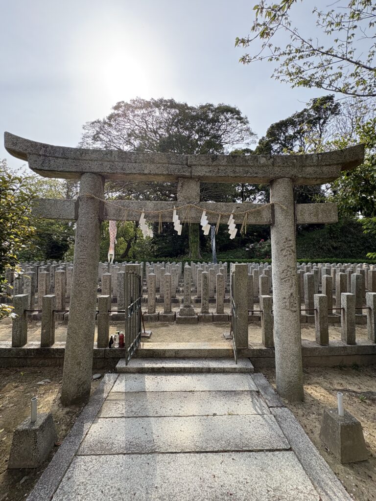 吉田松陰を中心に、維新に散った志士たち約400柱が祀られています。名もない者にいたるまで等しく祀られていて、整然と立ち並んでいる霊標から、奇兵隊における武士、町人の身分制を越えた新しい時代を感じさせるものがありました。